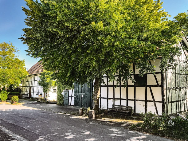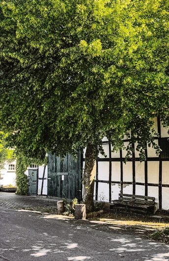 Wie damals: Schafweiden, urige Wald- und Wiesenpfade mit einsamen Wegkreuzen, Fachwerkdörfern zwischen Streuobstbeständen. Der idyllische Dörferweg verläuft über die sanften Höhen des Leuscheids und bietet euch schöne Fernblicke. Zurück in Eitorf warten zahlreiche Einkehrmöglichkeiten.