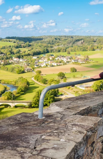 Am Wegrand eurer Tour erzählen Infostationen Wissenswertes zur Landschaft und Geschichte. Vom Wanderparkplatz Stein führt euch ein steiler Hangweg zur Vorburg von Burg Blankenberg. Die imposante Ruine der Hauptburg und die mittelalterliche Altstadt sind beliebte Ausflugsziele. Der spektakuläre Ausblick vom Burgberg auf das Siegtal verführt zum Verweilen und das schön restaurierte Fachwerkstädtchen bietet Gelegenheit für eine letzte Stärkung. Auf schmalem Pfad geht es hinab ins stille Ahrenbachtal. Für Abwechslung sorgt nach einer leichten Steigung die Weite der von Feldern und Wiesen geprägten Höhe „Scheid“, bevor der Weg nach Süchterscheid führt. Der Ort ist bekannt durch die Wallfahrtskirche Heilig Kreuz – ein sehenswertes Architekturensemble. Als zweites Tal im Tälertrio erreicht ihr auf bequemen Wald- und Feldwegen das vom mäandernden Wasser geformte Ravensteiner Bachtal, das in das einsame und artenreiche Krabachtal übergeht. Mit etwas Glück trifft man hier seltene Tierarten wie den Schwarzstorch oder den Eisvogel. Wieder zurück im Siegtal überrascht der neobarocke Schlosspark Merten mit unerwarteten Ausblicken. Parallel zur Sieg führt der Rückweg über einen wildromantischen Pfad an steil abfallenden Felsen und durch die Siegauen und das schmucke Fachwerkdorf Auel zurück zum Ausgangspunkt.