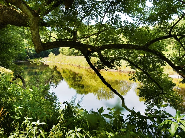 Ja, hier ist Trittsicherheit gefragt! Wo sich in Dattenfeld die Sieg in den Fels gefräst hat, schnürst du auf schmalem Pfad am steilen Hang entlang. Ansonsten schaukeln dich im Tourverlauf sanfte Panoramahügel zum Downer im Café am Fluss.