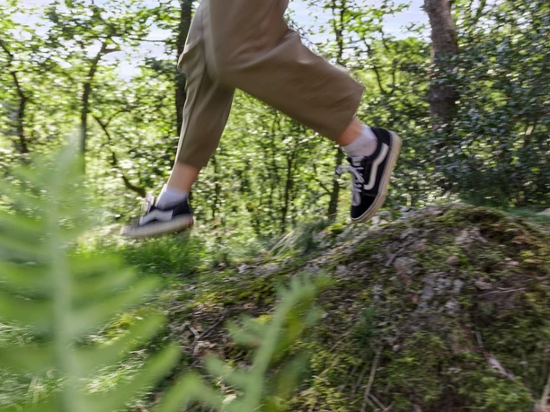 Dein Startpunkt nennt sich Herchen Bahnhof. Von hier aus führt dich eine ungewöhnliche Passage über eine Eisenbahnbrücke hoch über der Sieg, anschließend steigst du auf Treppen durchs steile grün. Eine effiziente Art Höhenmeter zu machen, und ein gutes Warmlauftraining. 50m weiter oben setzt du deine Tour auf dem Philosophenweg fort: ein schmaler Pfad am Steilhang über dem Fluss. Im Anschluss wird's etwas beschaulicher – ein aussichtsreicher Feldweg führt dich über eine Hügelkuppe. Dann wieder ein Steilgang, 100 Höhenmeter Singletrail mit etlichen Kehren runter an die Sieg. Der Fluss ist hier recht seicht, gegenüber befindet sich eine schöne Badestelle mit Schotterstrand. Weiter geht es auf einem Waldweg an der Sieg entlang, bis die nächste steile Etappe erreicht ist: der wunderschöne Singletrail durch den lichten Wald bringt dich auf den Auenberg – unterwegs entdeckst du eine Schutzhütte mit Aussicht. Der nächste spannende Trail wartet schon an der nächsten Biegung, nach dem Campingplatz. In engen Serpentinen steigst du wieder ab Richtung Fluss. Dort führt dich ein schmaler Pfad zunächst idyllisch an der Sieg, dann ansteigend in den Steilhang. Immer wieder streifst du auf dem ausgesetzten, alpin anmutenden engen Weg vorbei an beeindruckenden moosigen Felsformationen, querst enge Bachtäler über Holzbrücken – will sagen, spätestens jetzt gehst du richtig  "steil"! Im Anschluss folgt schon der nächste Singletrail,  dem Lommersiefen folgend erreichst du das Offenland rund ums Örtchen Saal mit toller Aussicht. Ein Feldweg führt dich zu einem Rastplatz mit geheimnisvoller Windharfe. Im Anschluss, zurück im Wald folgst du einem erdigen Trail Richtung einem sagenhaften Ort im Wald – ein "Heilbrünnchen" mit Picknicktisch. Auf deinem Weg zurück nach Herchen kommst du aus dem Grinsen nicht heraus: du schnürst mit schier endlosem Pfadvergnügen durch den Wald. Zum Ausklang hast du die Wahl: die bekannten Treppen runter zur Eisenbahn oder ein Abstecher in den Herchener Kurpark mit Café, Biergarten und schönen Plätzchen am Siegufer.