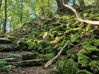 Durch Bad Honnef folgst du durch eine Art Park dem Annapfad am Ohbach entlang bergauf. Ein bequemer Waldweg bringt dich auf den rund 150m höher gelegenen Leyberg. Oben solltest du unbedingt die Aussicht vom Gipfelfelsen genießen. Ein am Ende herrlich steinreicher Pfad führt dich rauf. Den Himmerich erreichst du über die einsame Waldstraße "Mittelbergsweg". Auch hier lohnt sich ein Absticher zum Aussichtspunkt, dort ist auch Platz für ein Picknick. Jahrzehntelanger Abbau von vulkanischem Latitgestein formte den Berg mit seinen steil aufragenden Felswänden. Runter ins Schmelztal geht es zum Teil über einen schönen Singletrail, die Gegenüberliegende Hangseite bringt dich auf einem schönen waldweg zuück nach Bad Honnef.