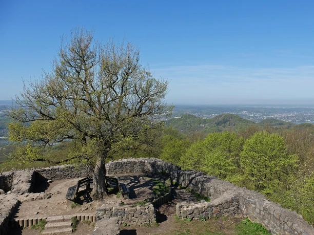 Gleich zu Beginn vom Ausgangspunkt in Rhöndorf läufts für dich bergauf. Die Löwenburgstraße bringt zum Rhöndorfer Waldfriedhof von dort folgst du durch Laubwald einem langgezogenen Bachtal zur Löwenburger Obstwiese. Wer mag, macht hier eine kurze Rast. Im Anschluss folgt ein sanfter Abstieg auf einem gut ausgebauten Waldweg zur Userotts-Wiese. Für deinen jetzt noch rund 3 km langen Aufstieg zum Gipfel des Ölbergs nimmst du einen sanft ansteigenden Waldweg vorbei an einem alten Steinbruch, dem Naturparkhaus und über den Parkplatz Margarethenhöhe. Den Gipfelfelsen solltest du nicht verpassen, ein kurzer steiler Abstecher führt dich zum Gasthaus Ölberg. Um den Gipfelfelsen zu erreichen, gehst du durch den Biergarten. Auf dem Rückweg erklimmst du quasi im Vorbeigehen noch 4 weitere Siebengebirgsgipfel: Erpelntalskopf (383m), Merkenshöhe (390m), Löwenburg (455m) und den Kleinen Breiberg. Zum Erpelntalskopf und über den Kleinen Breiberg schlängeln sich dabei tolle Singletrails. Dazwischen die geniale Aussicht von der Löwenburg – ein Highlight. Wer noch nicht Gipfelmüde ist gibt sich zum Abschluss noch den schmalen Pfad über einen Grat zum einsam gelegenen Großen Breiberg mit ebenfalls beeindruckender Aussicht. Es folgt zum Ausklang ein Sahnehäubchen: Du wanderst bergab auf einem schönen Singletrail zurück nach Rhöndorf.